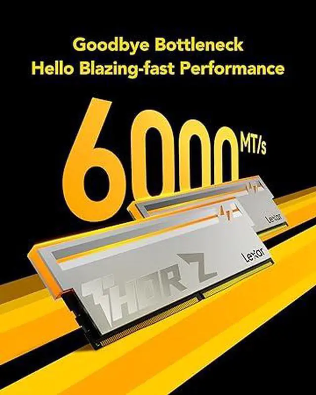 Fierce DDR5 Performance. Lexar THOR Z Series RGB DDR5 RAM 32GB Kit (2x16GB) 6000 MHz delivers up to 6000MT/s for a full-throttle, and with latency as low as CL38 for a next-gen gaming experience.