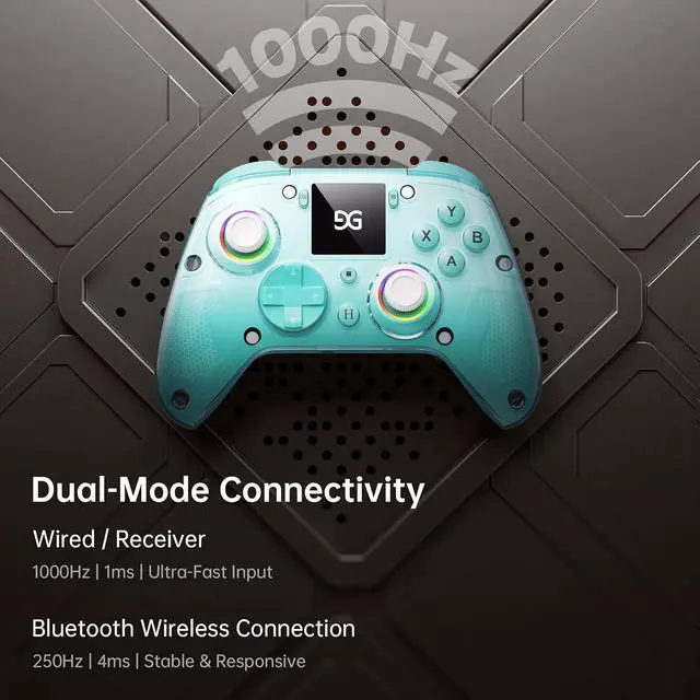 GUSGU G7 Wireless Gaming Controller with Interactive Screen, 1000Hz Polling Rate, Hall Joysticks & Triggers, 4 Programmable Buttons, Compatible with PC, Switch1, PS4, iOS, Android, Green