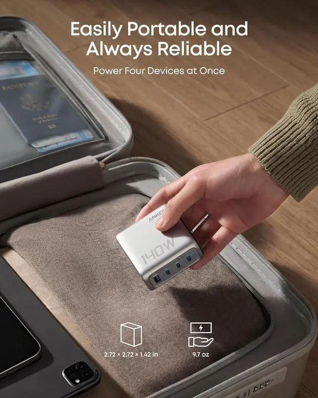 Fast Charging for Four Devices: Enjoy the convenience of powering four devices simultaneously with our advanced GaN technology for optimal performance.Dimensions: 2.72 × 2.72 × 1.42 in; Weight: 9.7 oz.
