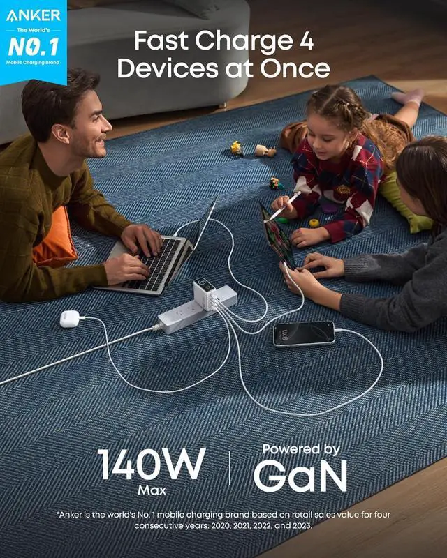 Anker Laptop Charger, 140W Max 4-Port GaN USB C Charger Block with Smart Display, Fast Charging Power Adapter, Touch Controls for MacBook, iPad, iPhone 17/16 Series (Include 5FT Cable, Non-Battery)