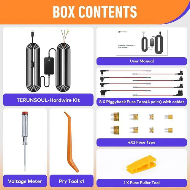 *Friendly reminder: If you want to use the hardwire kit, since it involves the fuse box, we recommend having it installed at a professional service center. Incorrect installation may damage the fuses.