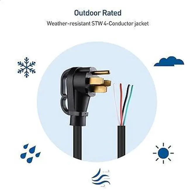 2. Outdoor rated RV power cable has a STW rating with 6 + 8 AWG copper conductors; Weather-resistant 50amp RV electrical cord is engineered with a 600V rated thermoplastic STW cable jacket to prevent overheating
