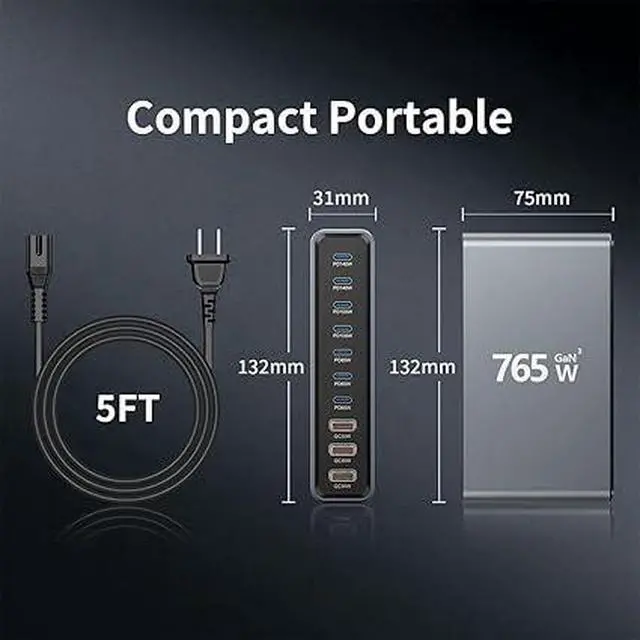 765W 10-Port GaN 3 Desktop Charging Station for Phones, Tablets, Laptops, Smartwatches & Earphones - Home, Office & Travel Compatible