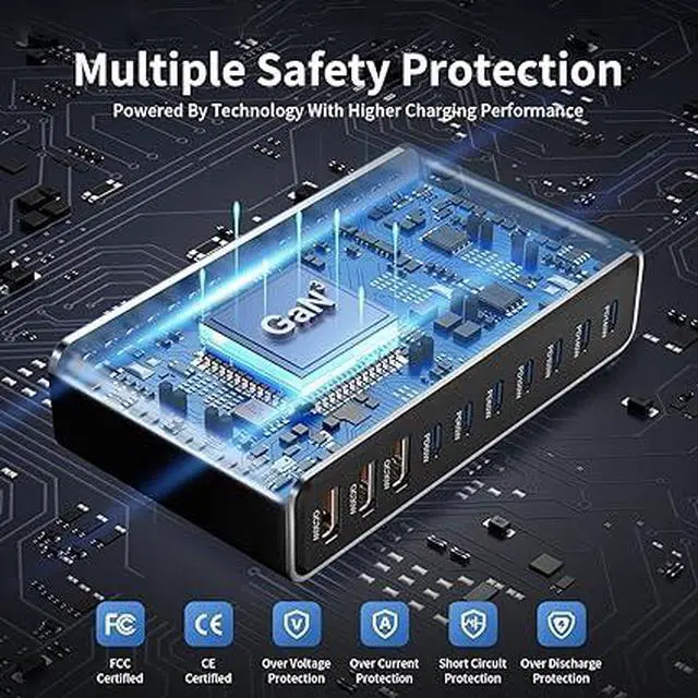 1. 10-in-1 All-in-One Charging Station: 7 PD3.1 + 3 QC3.0 Fast-Charging Ports, Quickly Charge Laptops, Phones, Tablets, Earphones, and Other Devices Simultaneously. Handle All Your Device Power Needs at Home, in the Office, or While Traveling with One Station.