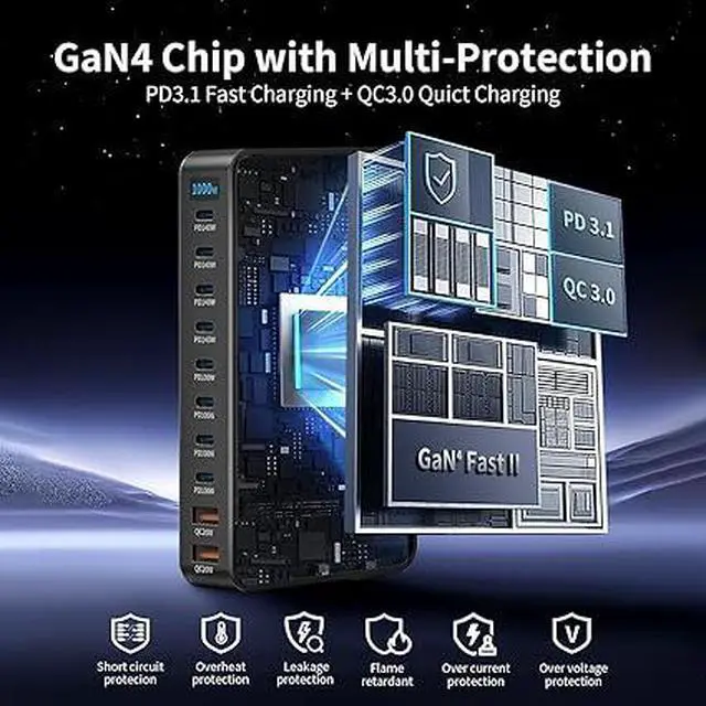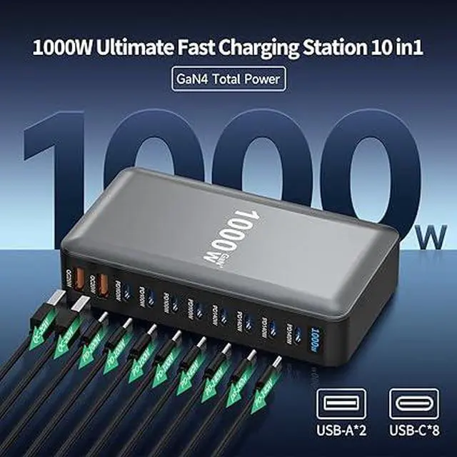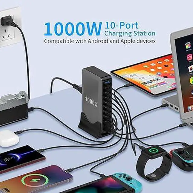 10-in-1 All-in-One Charging Station: 7 PD3.1 + 3 QC3.0 Fast-Charging Ports, Quickly Charge Laptops, Phones, Tablets, Earphones, and Other Devices Simultaneously. Handle All Your Device Power Needs at Home, in the Office, or While Traveling with One Station.