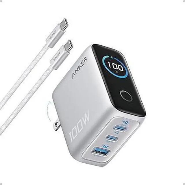 What You Get: Anker Charger (100W, 3 Ports, Smart Display, Non-Battery), 4.9 ft USB-C to USB-C cable, welcome guide, 18- month warranty, and our friendly customer service.