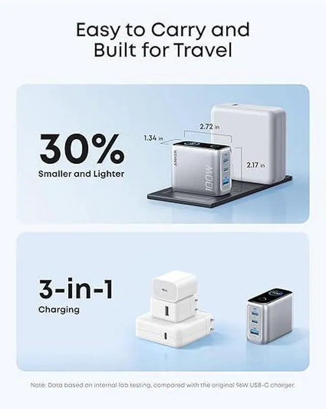 Full-Speed 100W Max Power: Advanced GaN technology delivers a steady 100W output on any USB-C port and sustains peak performance up to twice as long compared to the average 100W charger.
