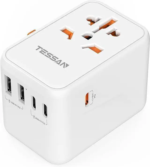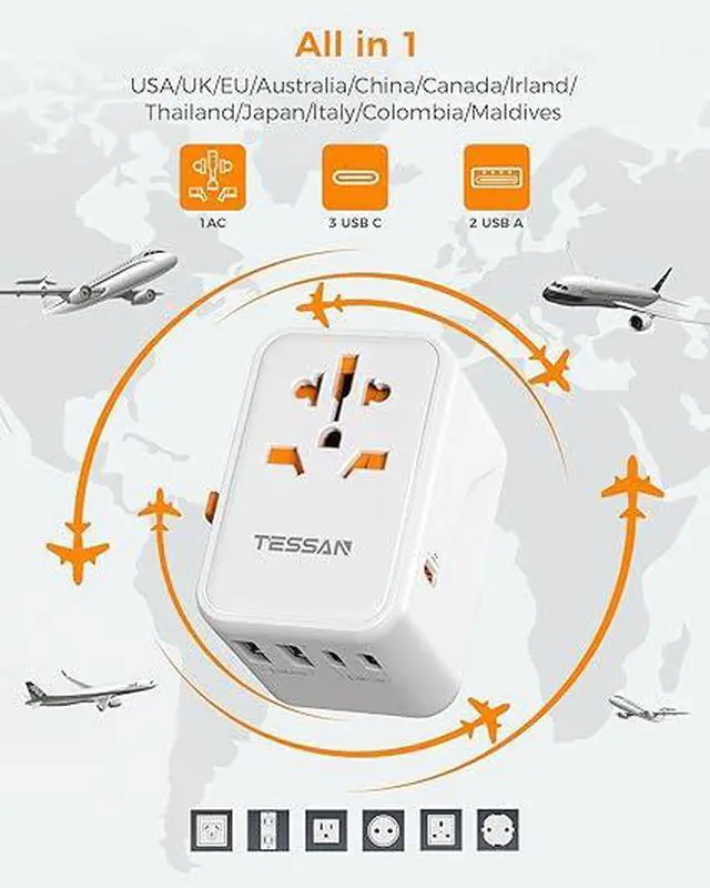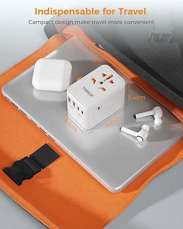 Portable Size: TESSAN universal travel adapter with only 6.3oz lightweight design, compact size allows this travel plug adapter easily put in your pocket, effectively saving the space of your suitcase, backpack, briefcases, and handbag