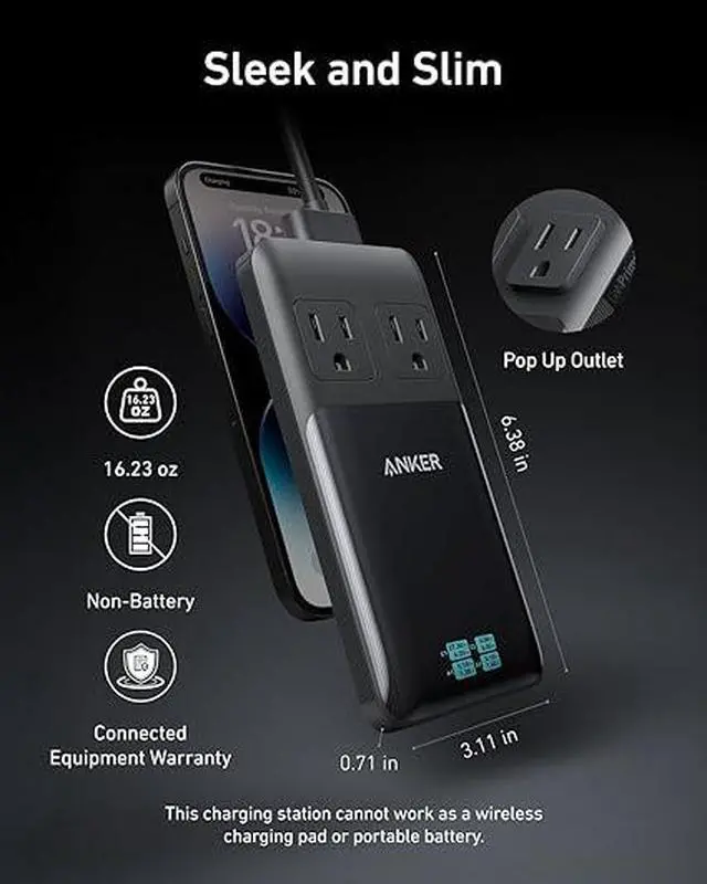 Ultra-Sleek and Portable: Designed with Anker's innovative stacked design with a pop-up outlet, this power strip is incredibly slim at just 0.7 inches thick, making it easy to carry in your bag or backpack.
