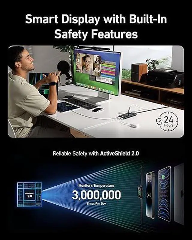 Stay Informed and Protected: Monitor and protect your devices with the smart display's real-time data monitoring, while ActiveShield 2.0 technology offers up to 3 million daily checks for superior protection. Please note that the screen will only light up when the product is connected to the power supply.