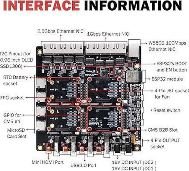 MONITORING AND PACKAGE CONTENTS: Integrated voltage and current monitoring with INA3221 x2 sensors, package includes 1x DeskPi Super4C board and 1x DC 19.0V 4.73A power supply