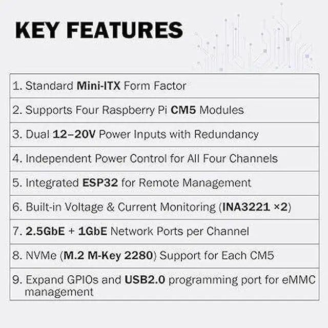 COMPATIBILITY: Specifically designed for the Raspberry Pi Compute Module 5 (CM5) - supports up to four CM5 modules simultaneously. Important note: Not compatible with CM4