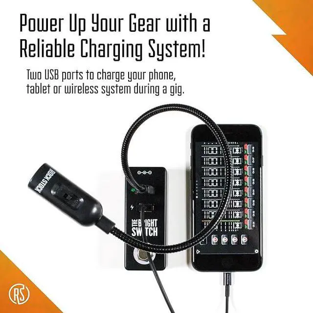 The Bright Switch - Compact USB Light and Charging Station for Pedal Boards - Gooseneck LED Lamp & 9V DC Power Supply - Light Up Your Set Up in Dark Venues & Charge Your Devices