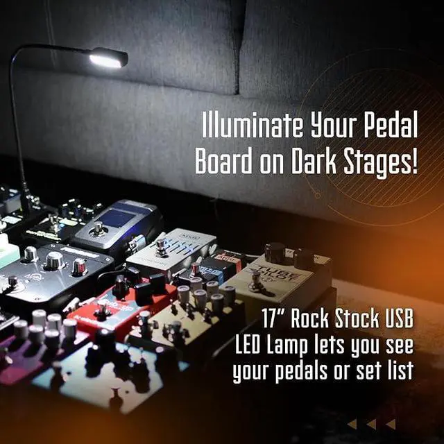 LIGHT UP YOUR PEDAL BOARD: includes 17 inch Rock Stock USB gooseneck LED light, providing additional lighting options. Illuminate your pedal board and adjust the lamp to your desired angle.