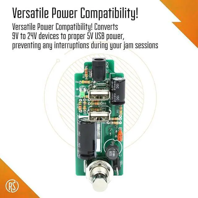 WORKS WITH YOUR PEDAL BOARD: supports 9V to 24V DC devices, converting voltage to 5V USB power while providing stable operation, preventing any interruptions during your jam sessions.