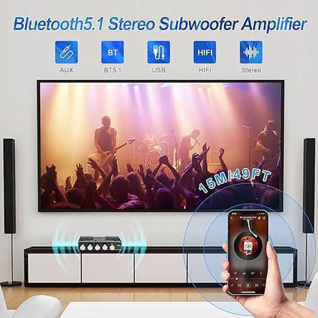 Multiple Audio Input Modes This Mini amplifier receiver built-in Bluetooth 5.1, USB flash disk, USB sound card and 3.5mm AUX Input. Bluetooth 5.1 mode, faster transmission speed, lossless decoding, lower distortion rate, connection distance to audio equipment is 15m/49ft. Note: When using AUX mode, please confirm that the Bluetooth connection of this module has been disconnected