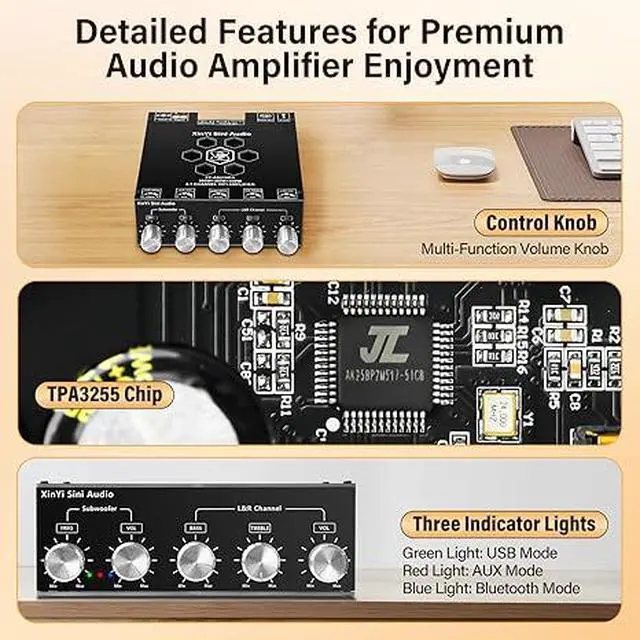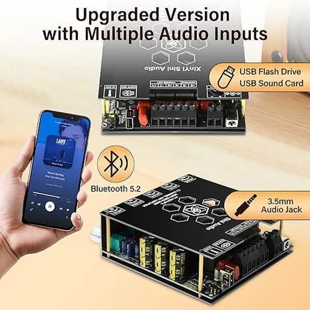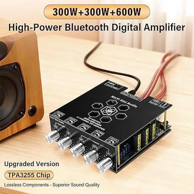 [TPA3255 HiFi Chip]Daakro XY-AS21HPA Bluetooth Amplifier Board uses the original imported TPA3255 HiFi amplifier chip with PurePath technology for ultra-high resolution, ultra-low distortion and high-fidelity sound quality. Supports 2.1-channel configuration, including left channel and right channel output. The left and right channels each provide 300W output power, creating an immersive sound experience.