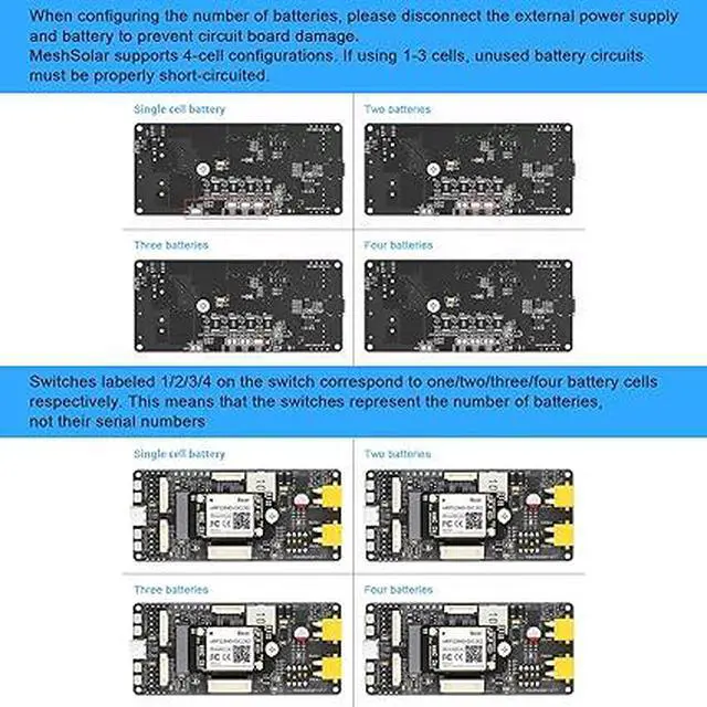 Multi-mode charging: 18-25V solar MPPT charging; USBPD3.0 fast charging; 18-25V external DC charging;Warning: Before applying power (activate/charge/set), verify the alignment of the battery switch with solder joints and battery connections to avoid board damage. MeshSolar requires a 20V charger to activate. If a 20V charger is not available, a compatible 20V power adapter can be purchased separately.