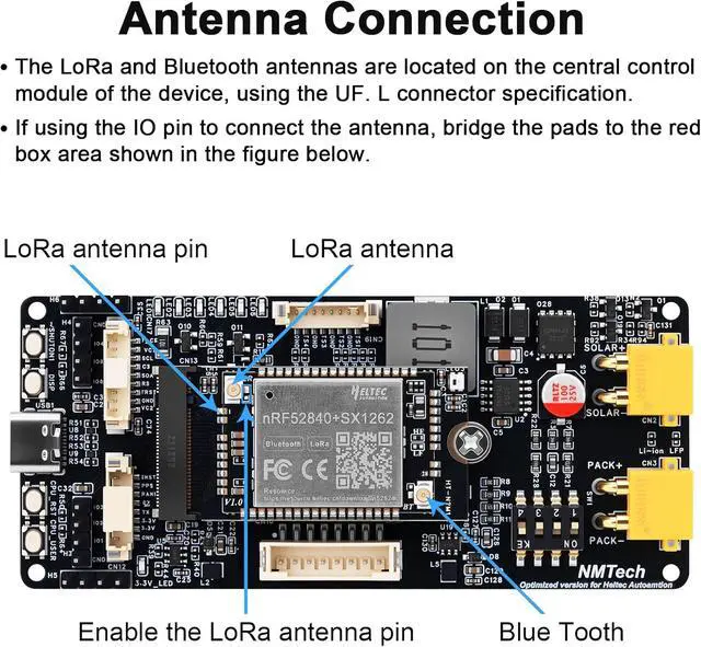 With its low-power design, extensive hardware expansion interfaces (supporting displays, GPS, and general-purpose I/O), and seamless compatibility with HT-n5262M modules (nRF52480 + SX1262), MeshSolar is well-suited for high-power or long-term stable power applications such as solar systems and remote monitoring. It also fully supports the Meshtastic ecosystem.