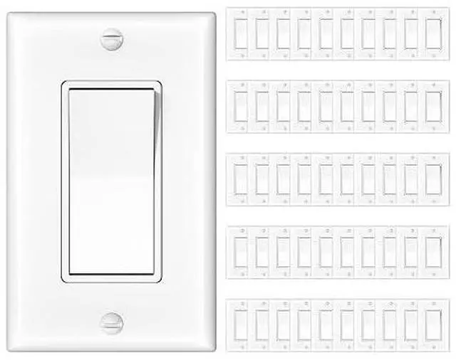 50 Pack Single Pole Light Switch with Wall Plate, UL Listed, 15A 120/277V, On/Off Rocker Paddle Interrupter Wall Switch, Grounding Screw, Residential Grade, Suitable for Home and Business, White