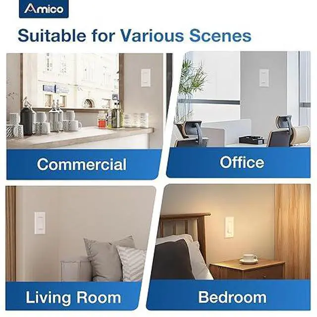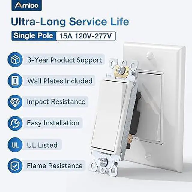Residential Grade: Rated 15A, 120/277V for stable operation in household or light commercial use. Compatible with standard switch boxes and wiring