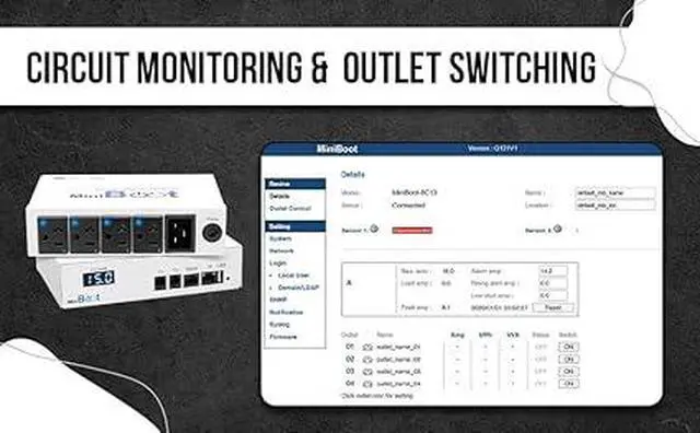 POWER MONITORING VIA NETWORK & LOCAL METER > Our remote network monitoring Allows remote monitoring via the free Graphic User Interface (GUI). > Provides local current monitoring via MiniBoot blue LED ammeter. > Allows user to establish the remaining capacity prior to adding a new device to the MiniBoot, plus displays the current being drawn and receives threshold alerts remotely.