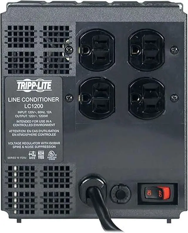 1200W LINE CONDITIONER: Corrects voltage output by boosting undervoltages by 9%, reducing overvoltages by 10%, and boosting severe undervoltages by 19%. EMI/RFI filter removes up to 75 dB of line noise for audio equipment and other sensitive electronics.
