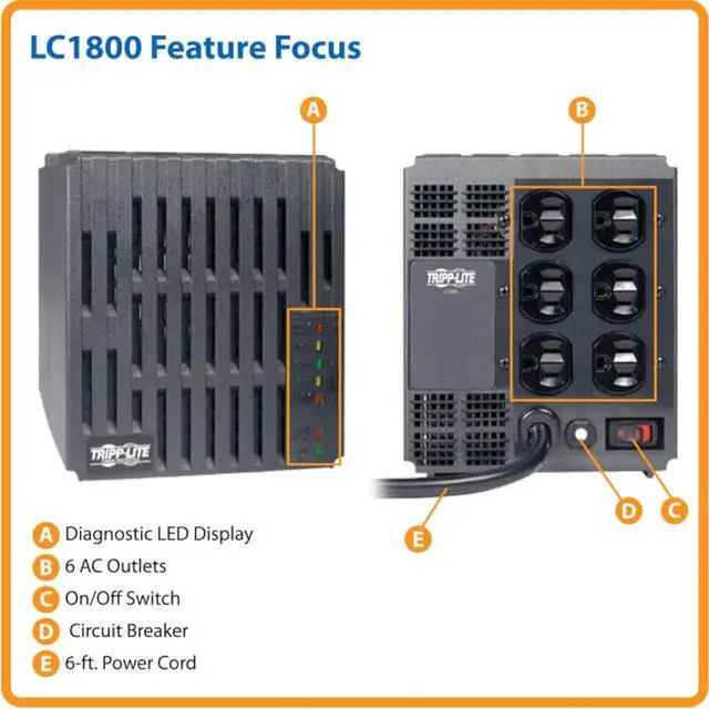 LC1800 Power Conditioner for Audio Equipment, Appliances, Home Theater & More | 1800W, 120V, 6 Outlets, Voltage Regulator (AVR), EMI/RFI Filter, Line Conditioner, 1440 Joule Surge Protector