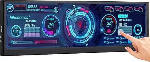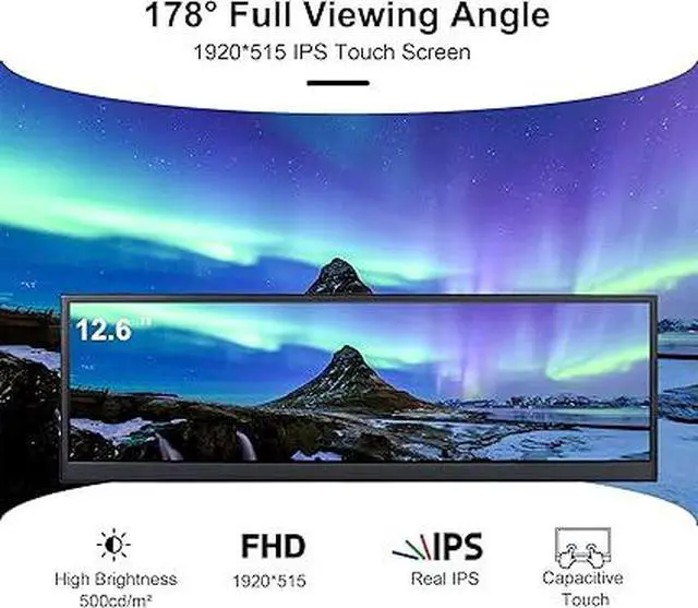 FHD IPS Portable MonitorWisecoco Portable Monitor is made by AAA+ quality lcd panel. 1920x515 high resolution, 178° full viewing angle, 60Hz refresh rate, 1000:1 contrast ratio. Dual inside louder speaker. 12.6 inch DIY stretched bar display. it will offer perfect use feeling when you play games.