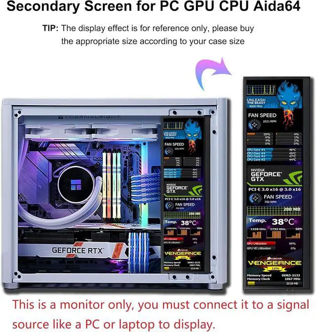 Widely Compatibility Mini HDMI interface design, Easy to connect your laptop, PC, etc. It works perfectly with Windows. it can be used as Aida64 sub second screen CPU GPU monitoring .(Tips:Because our product is just a LCD Monitor, so 1, You need to connect your device through the HDMI port to play videos, images, and more. 2, If you need to use Aida64, please download it yourself, you can contact us for sensorpanels.)
