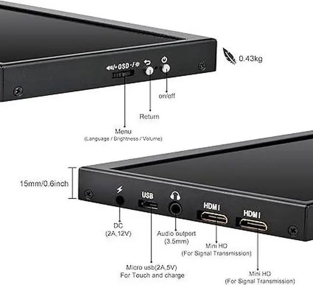 Easy to use Plug and Play Portable,No driver needed.This monitor has four screw holes behind it, the spacing of the screw holes conforms to international standards, making it convenient for you to install this portable display wherever you want.