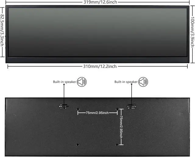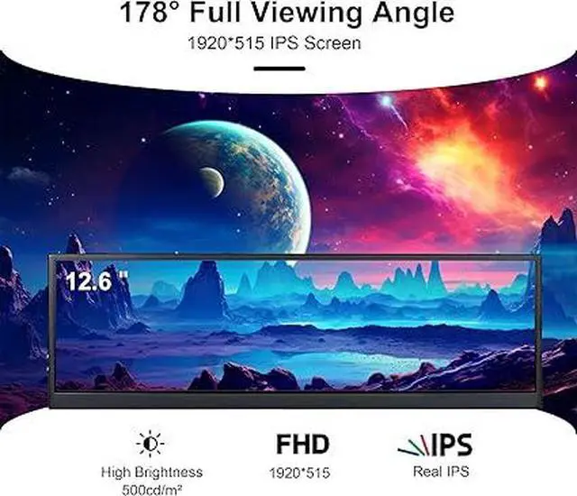 SpecificationFHD IPS Portable Monitor is made by AAA+ quality lcd panel. 1920x515 high resolution, 3-5 ms response time, 178°wide viewing angle, 60Hz refresh rate, 1000:1 contrast ratio. 12.6 inch DIY stretched bar display