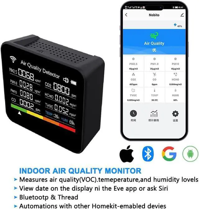 Considerate Sound Warning:Temperature monitor is equipped with an alarm sound. When the air quality exceeds the normal value, it will promptly remind you to protect the health and safety of you and your family. The air quality tester can also connect to a smartphone app for added convenience, giving you even more control.