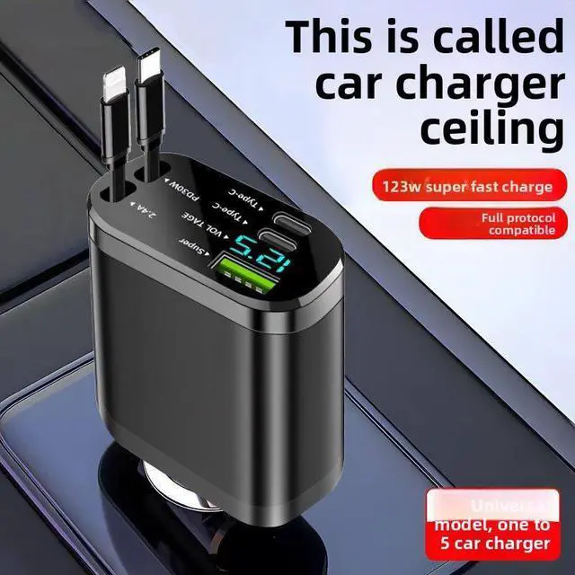 120W Super Fast Charge 6A Multifunctional Car Charger Telescopic One-to-Four Converter Star Top Atmosphere 12-24V Cigarette