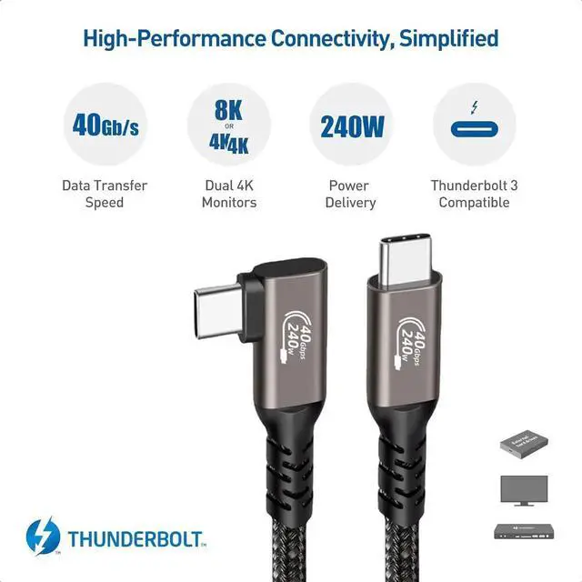 ![Alt view image 5 of 7 - USB 4 Cable 1.65 ft [USB-IF Certified],Right Angle 40Gbps USB 4 Cable Supports 8K HD Display, 40 Gbps Data Transfer, 240W Charging USB C to Type-C Cable, for Laptop, Hub, Docking, and More](https://c1.neweggimages.com/productimage/nb640/C1JGS26031707H6KN9A.jpg)