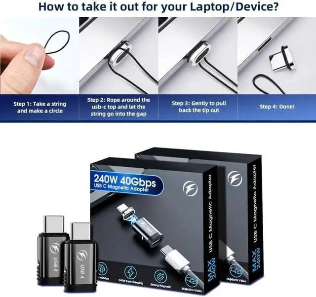 - [ 8K Video Output & 40Gbps Data Transfer ] The magnetic breakaway USB C connector compatible with Thunderbolt 4 and USB 4 standard, support 40Gbps data transfer. And supports 8K@60Hz HD video & audio output. This adapter will replace your USB C port completely without any sacrifice, let you work efficiency in work or study, and also enjoy the ultra HD video resolution at any places.