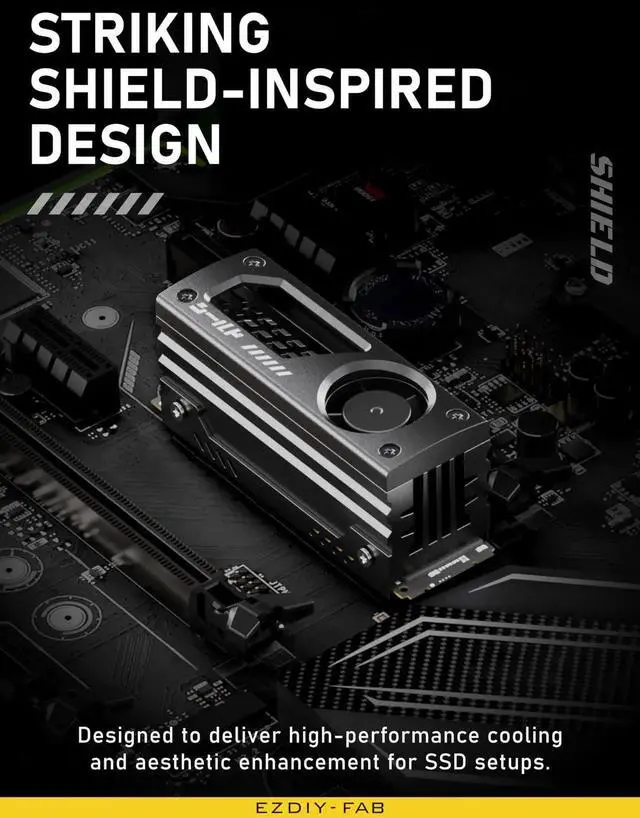 Shield M.2 SSD Heatsink with build-in 20mm PWM Fan, Premium Aluminum Design, High-Performance SSD Cooler for M.2 2280-Black-1 Pack
