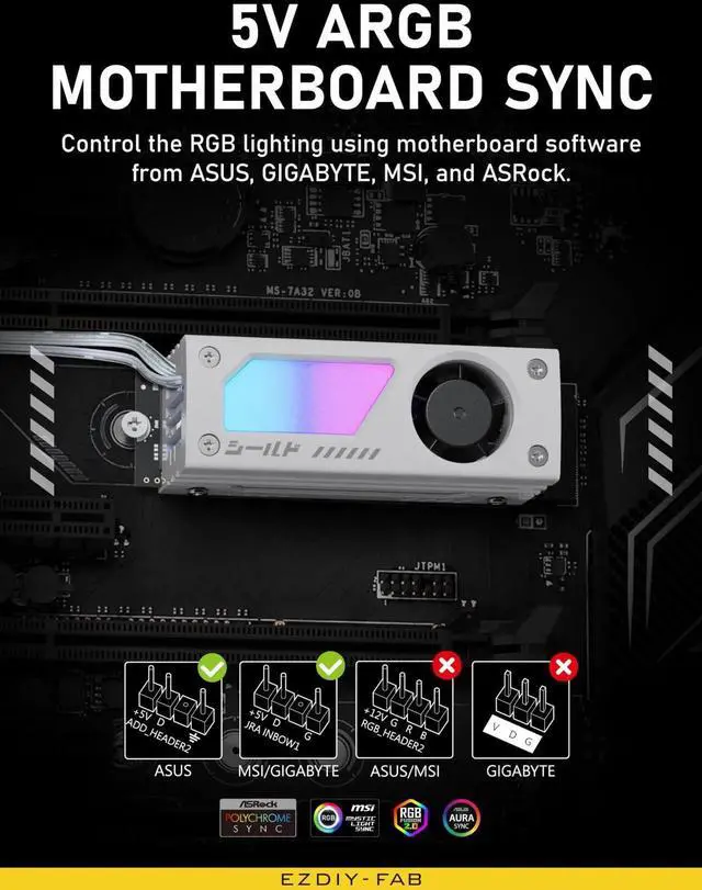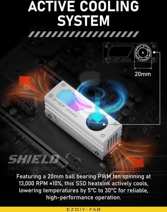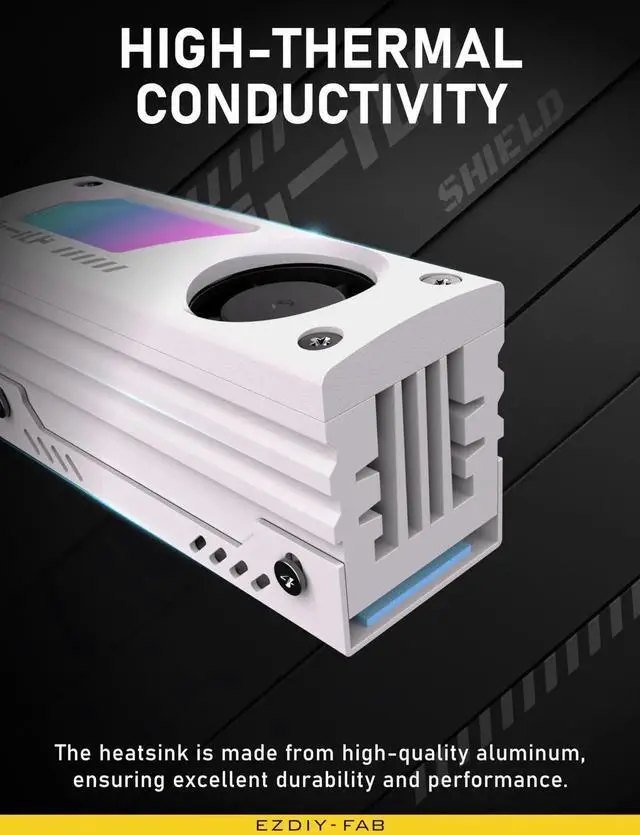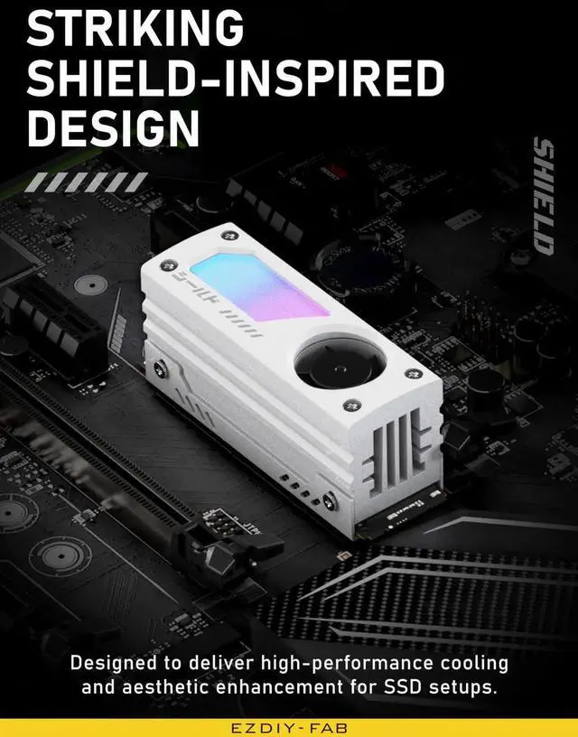 Shield ARGB M.2 SSD Heatsink with build-in 20mm PWM Fan, Premium Aluminum Design,5V 3-Pin ARGB Sync , High-Performance SSD Cooler for M.2 2280-White-1 Pack