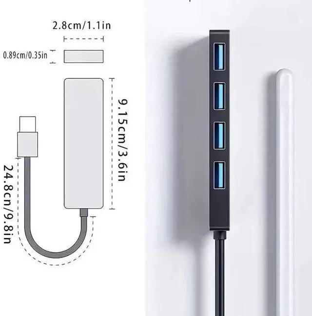 SuperSpeed TransmissionWith high efficient USB C 3.0, 4-port USB splitter provides 5 Gbps stable data transfer and is compatible with 2.0/1.0. It is fast enough to transfer an HD movie in seconds. user-friendly design1cm ultra slim body, small, convenient and beautiful. The user-friendly design takes into account the size of most flash drives on the market and the space between each USB port. Insert 4 flash drives at the same time without worrying about space. LED indicator DesignBlue low-light indicator light, faint and not dazzling, but also able to know the working status at any time, grasp the power status.