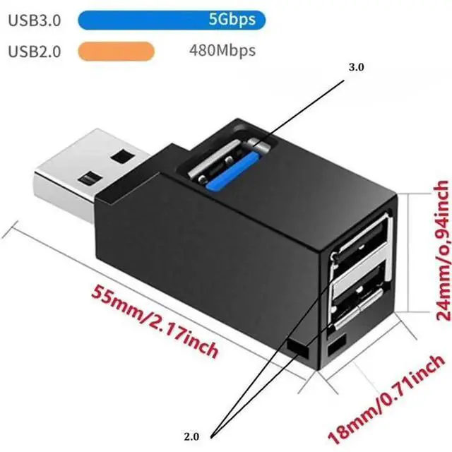 - Super small and lightweight USB splitter: USB splitter is very small and lightweight, with ABS plastic housing sandblasting process, 2 upgraded USB 3.0 ports, speed up to 5 Gbp/S 3 downstream USB 2.0 ports speed up to 480 MB/s.USB port expander: Adopt the latest USB hub controller, no driver, plug and play, split your single USB port into 3, a USB interface can be extended to multiple to work independently, easy to use.