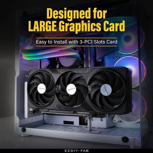 New designed mount to vertically show off GPU. Supports most 1, 2, and 3 slot graphic cards. Designed for most full/mid ATX tower with at least 7 available PCI slots.