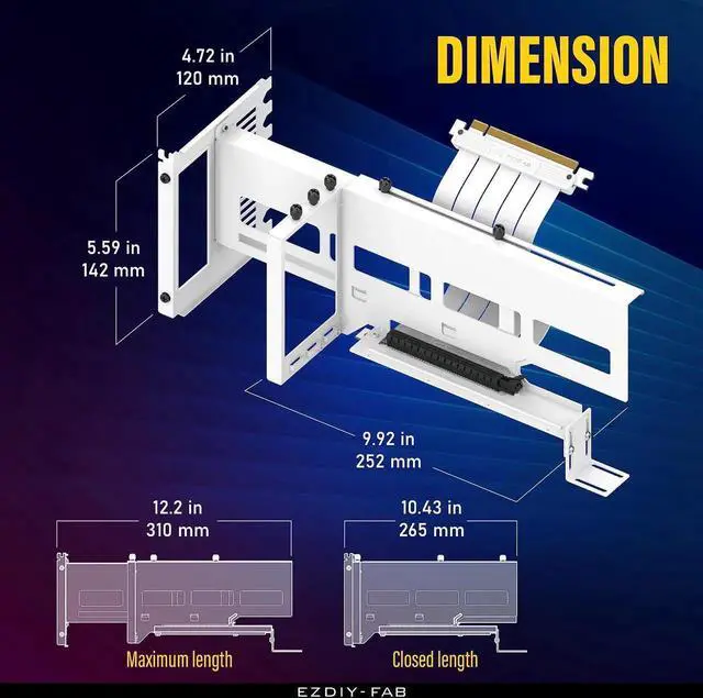 Vertical PCIe 4.0 GPU Mount Graphic Card Bracket, Video Card VGA Support Kit with PCIe 4.0 X16 Gen4 White Riser Cable 90 Degree Right Angle- White