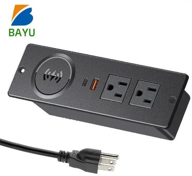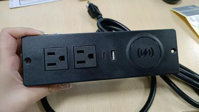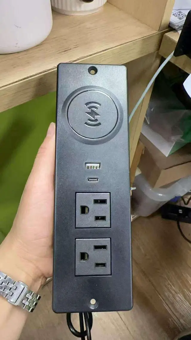 US Standard Power Strip with Wireless Charge Desktop Power Outlet with 2 Outlet 2 USB /Hidden Recessed US Power Socket Black