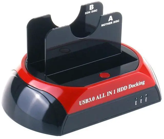 • It is a multifunctional hard disk holder with built-in Card Reader/HUB and SATA+IDE slots. Stylish appearance design, the appearance is black as the main body, with red lighting flash device, two color matching designs are unique and beautiful,beautiful/fashionable. It is a simple and practical multifunctional hard disk holder, the beautiful main body appearance shows a casual beauty, and it is easy to move. Whether at home or in the company, you can access files at any time. This is a very good choice for large-scale data backup and system backup. Product Functions: Can read 2 hard disks SATA+IDE at the same time (maximum support 2TB), data transmission and file interactive backup are fast and convenient.