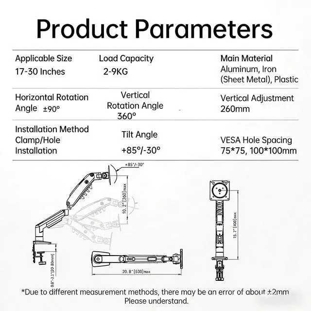 | Key Features | Premium Gas Spring System: Built with high-precision imported gas spring, supporting 50,000+ times of smooth, silent adjustment | with no sagging or drooping even after long-term daily use, locks securely at any position with one-hand operation |