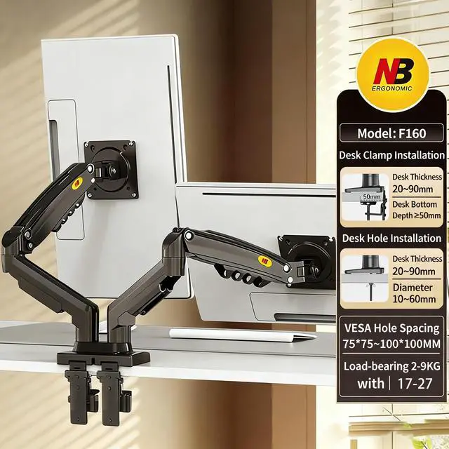 | Broad universal compatibility | Suitable for 17-27 inch LCD, LED, and curved displays, with a load capacity of 2-9kg per arm, fully compatible with standard VESA | 75x75mm and 100x100mm mounting holes, suitable for all mainstream display brands |