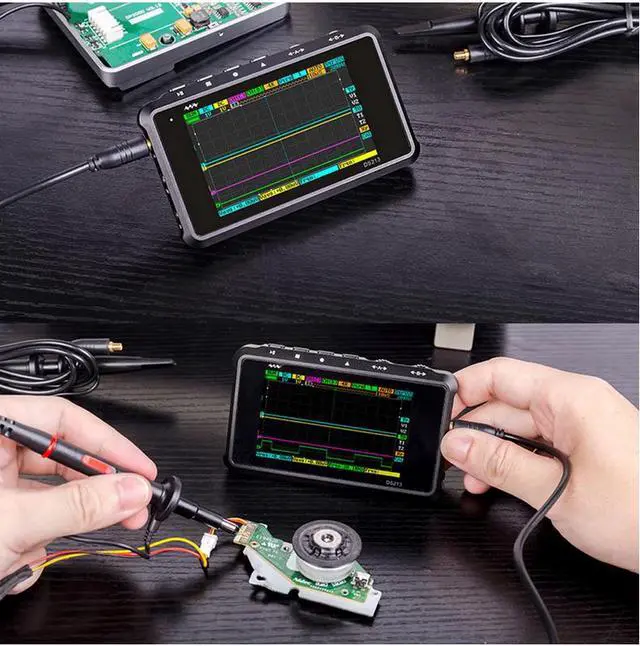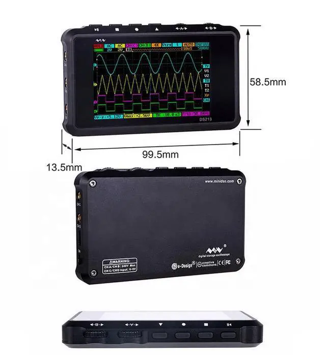 Mini Portable Digital Oscilloscope 4 Channels 15MHz Bandwidth 100Msa/s Pocket-Sized Storage Oscilloscope DS213