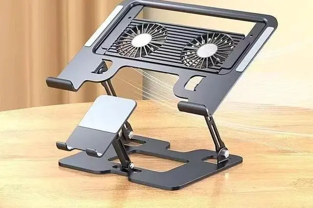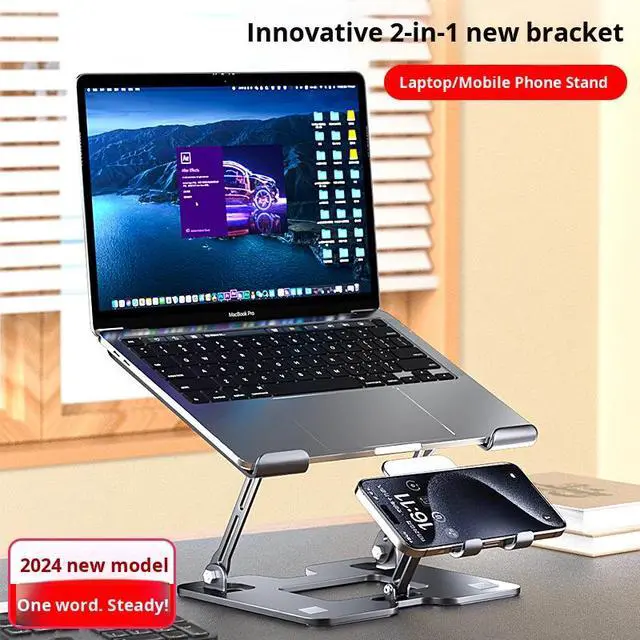 2 In1 Height Adjustable Vertical Cooling Stand Carbon Steel Laptop Phone Tablet PC Stand with Phone Holder