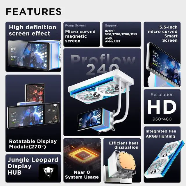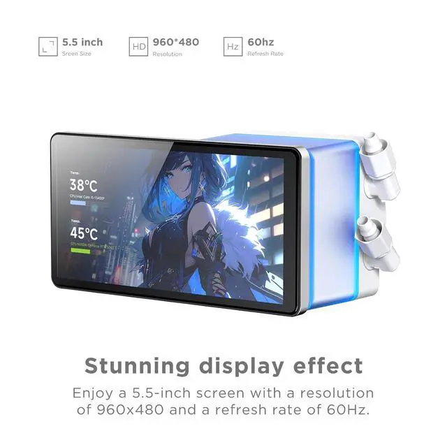 [5.5 Inch LCD Smart Screen]Equipped with a 5.5-inch LCD smart screen with a resolution of 480*960. 270° rotation (adjustable 90°/180°/270°) is supported. Magnetic design for easy assembly, multi-angle display without dead angle, convenient to display customized content or hardware data