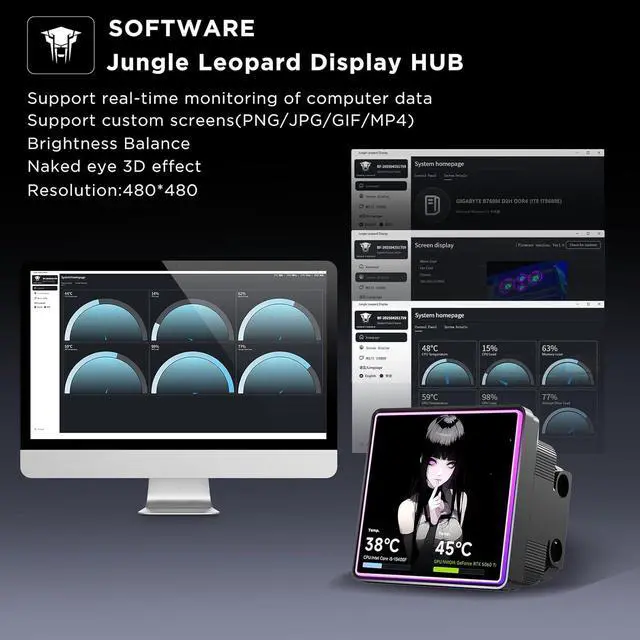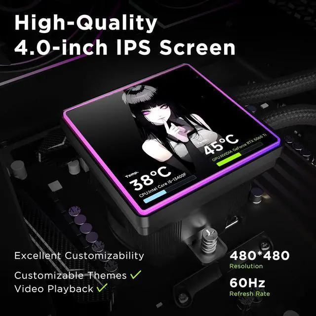 [4-Inch LCD Screen]Equipped with a 4-inch LCD screen, resolution: [Please fill in the resolution]; adopting a magnetic adsorption design, it supports 360° rotation (with four adjustable angles) and offers easy installation. It enables multi-angle display without blind spots, ideal for showcasing customized content or hardware data